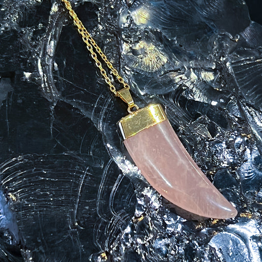 Rose Quartz Horn Necklace (Gold)
